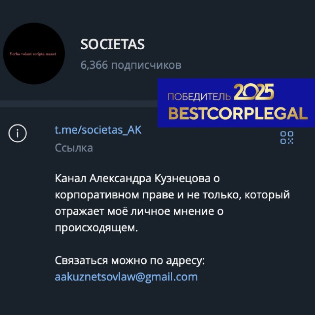 Telegram-канал Александра Кузнецова о корпоративном праве и не только.